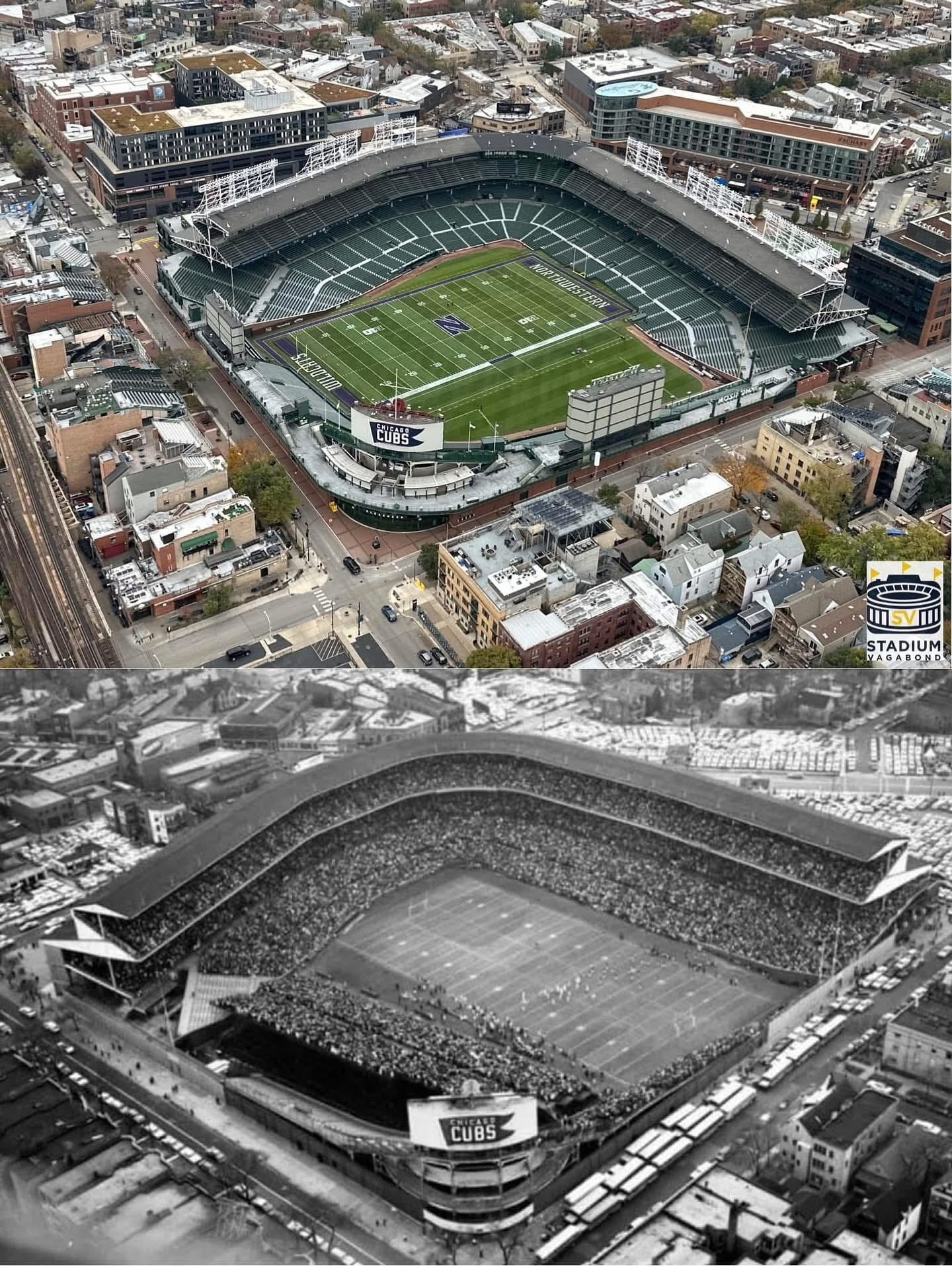 Northwestern will playing a college football game at Wrigley Field this weekend. Check out how the grid-iron is positioned, compared to when the Chicago Bears played at Wrigley:
