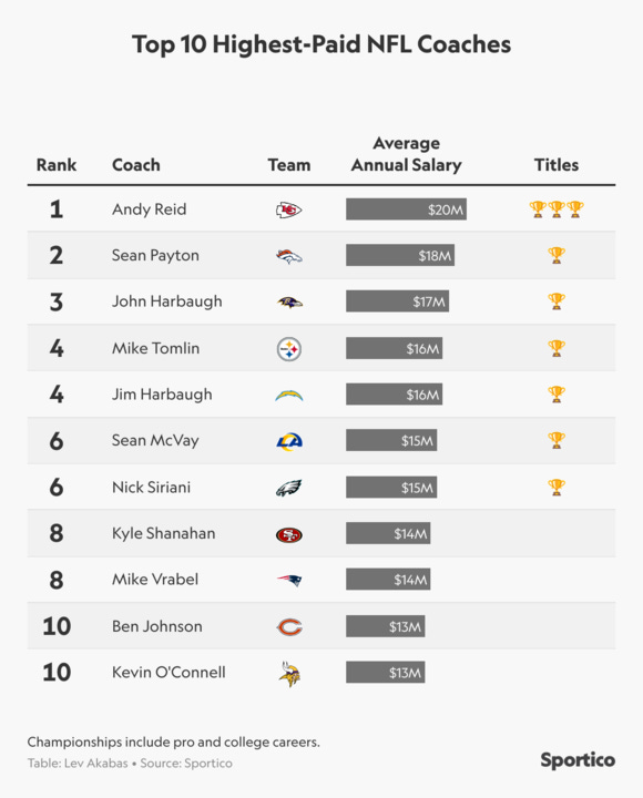 Highest paid NFL coaches you ask? Well Sportico has the answer: