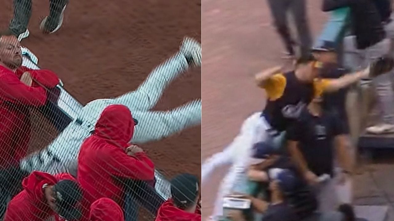 As you can see, Schlittler threw 82 pitches in 5 2/3 innings. He allowed one run, a first inning home run by Kyle Karros, the son of former major leaguer Eric Karros. It was Kyle’s first at bat at AA. Karros would end the game with a walk-off HR in the ninth. On Thursday night, Yankees third baseman Ryan McMahon made a sensational, tumbling catch into the Red Sox dugout in the eighth inning. The Colorado Rockies traded McMahon to the Yankees in July and called up Karros to play third base. See what I mean?