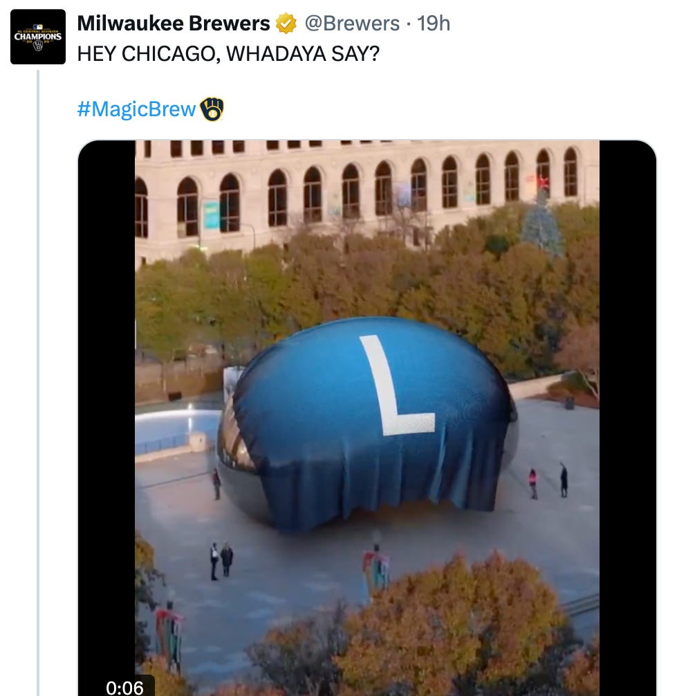 We now live in a social media world, where winners can no longer win gracefully. Take this post on X by the Milwaukee Brewers official account, after winning their series against the Cubs. To understand the post, remember when the Cubs win at Wrigley Field they always fly the “W” flag: