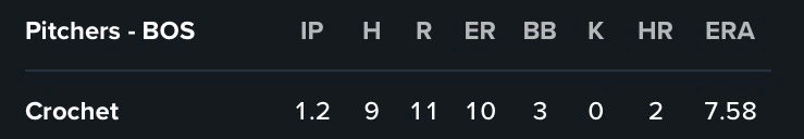 Here is Garrett Crochet’s pitching line for the Red Sox in last night’s game at Minnesota: