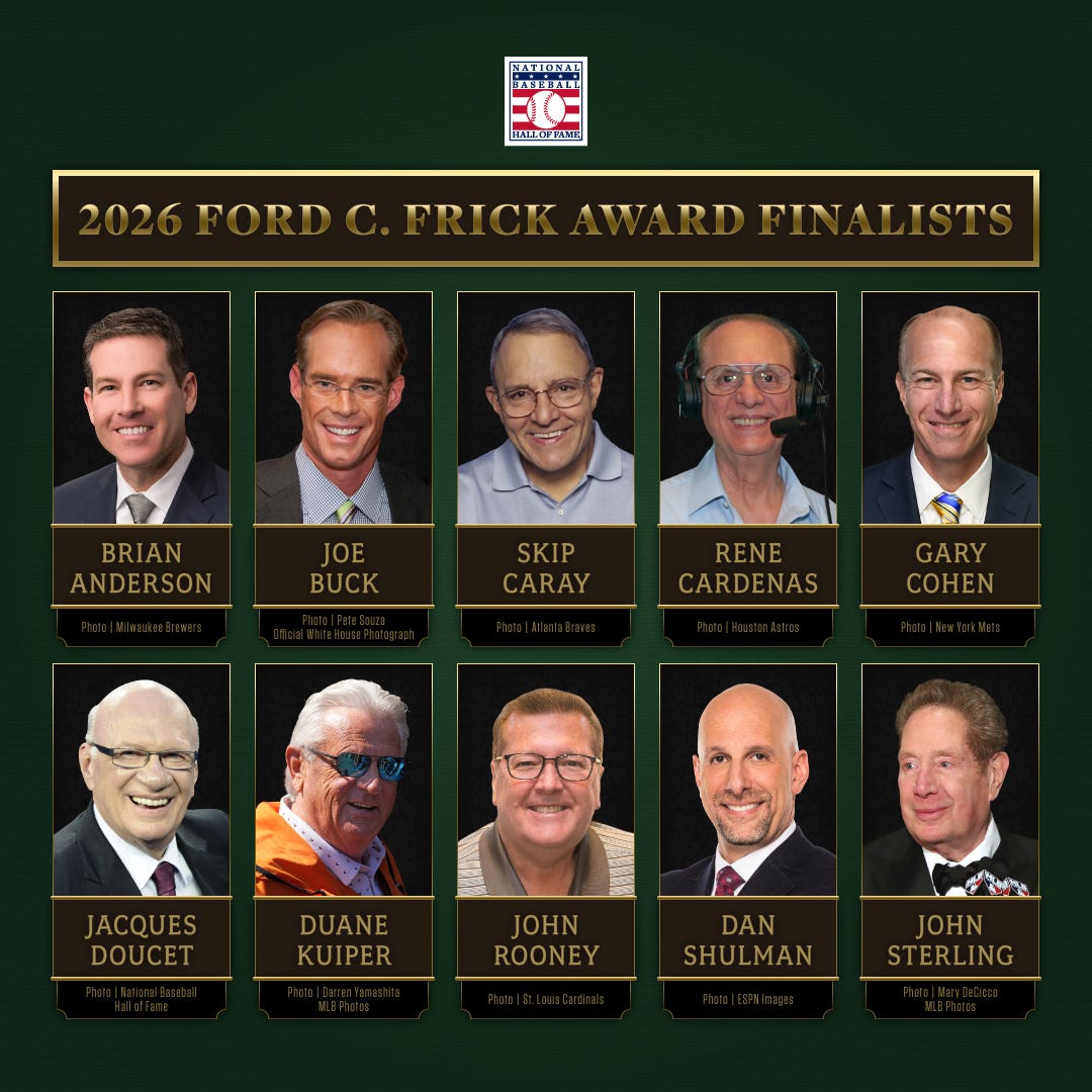 The National Baseball Hall of Fame and Museum has announced 10 finalists for the Ford C. Frick award: